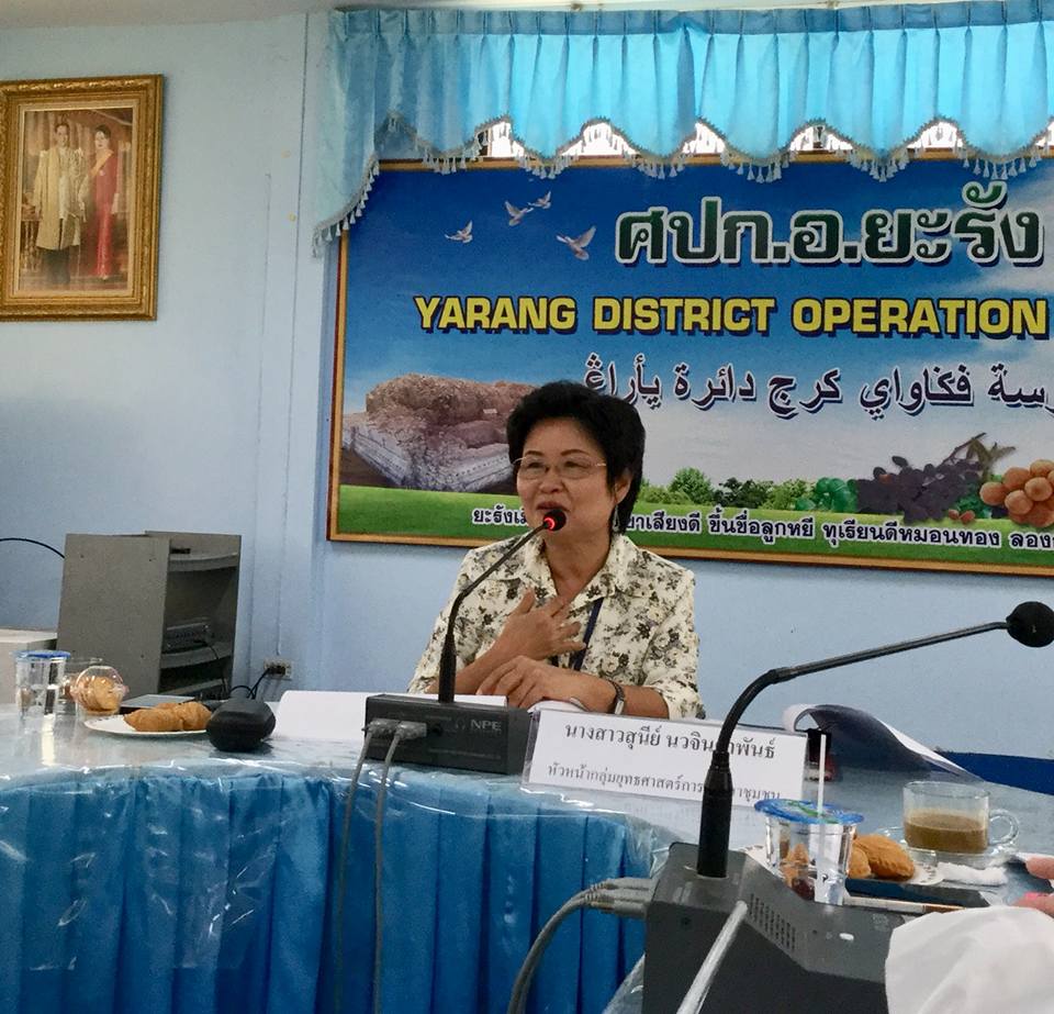 นางสาวสุนีย์ นวจินดาพันธุ์ รักษาการในตำแหน่ง หัวหน้ากลุ่มงานยุทธศาสตร์การพัฒนาชุมชน พร้อมด้วย นางสาวพนิดา เล๊าะนะ นักวิชาการพัฒนาชุมชนชำนาญการ กลุ่มงานยุทธศาสตร์การพัฒนาชุมชน และ นายภีรวัฒน์ จันทร์ดิษฐ์วงศ์ นักวิชาการพัฒนาชุมชนชำนาญการ กลุ่มงานส่งเสริมการพัฒนาชุมชน นิเทศงานในพื้นที่อำเภอมายอและอำเภอยะรังโดยมีทีมงาน สำนักงานพัฒนาชุมชนอำเภอมายอและอำเภอยะรัง ให้การต้อนรับและสรุปผลการดำเนินงานยุทธศาสตร์กรมการพัฒนาชุมชน ณ ห้องประชุมอำเภอมายอ, และห้องประชุมอำเภอยะรัง