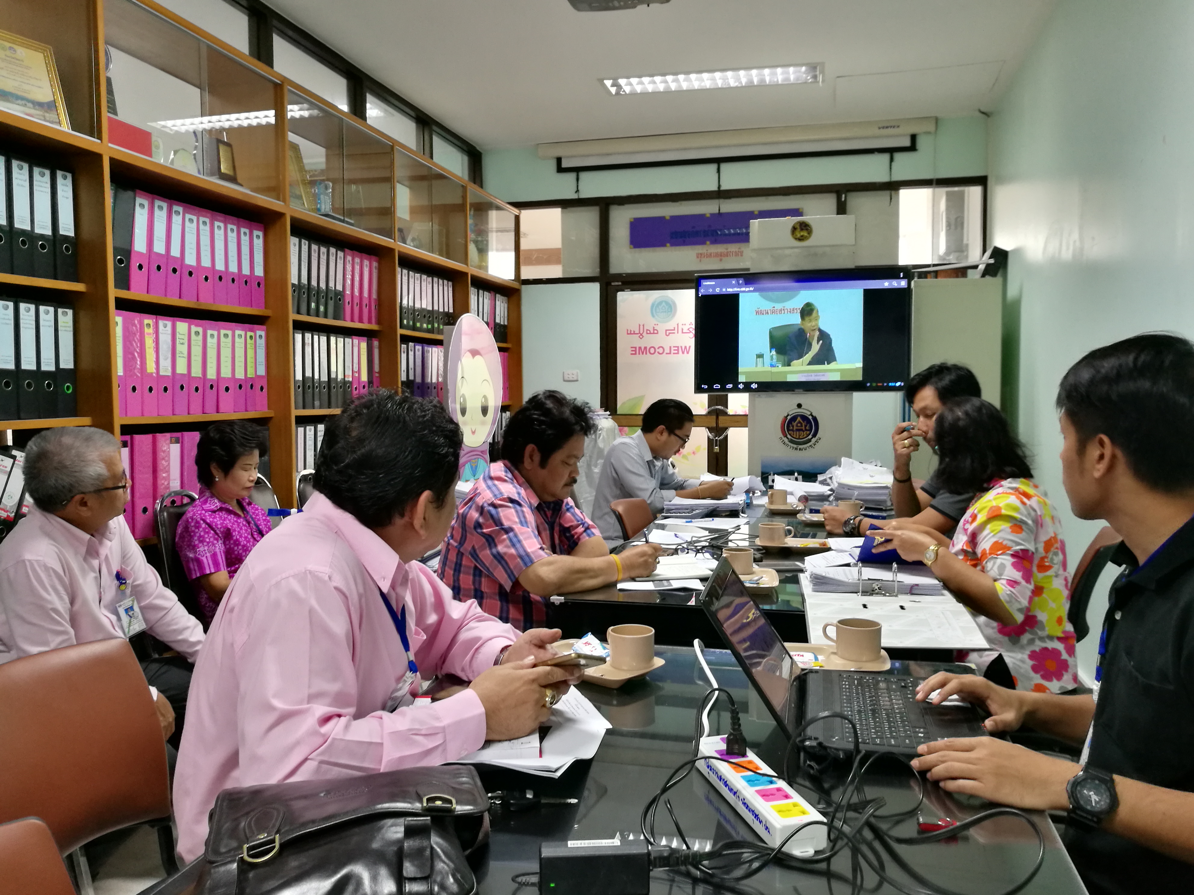 รับฟังการประชุมทางไกลจากกรมการพัฒนาชุมชน ผ่านระบบคอนเฟอร์เรนซ์