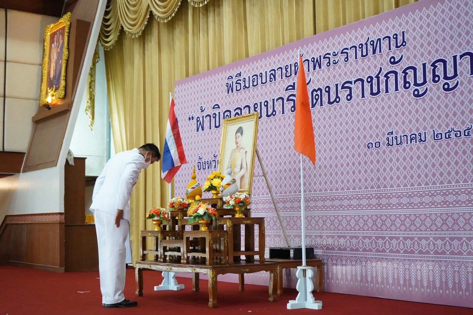 จังหวัดปัตตานี โดยสำนักงานพัฒนาชุมชนจังหวัดปัตตานี จัดพิธีเชิญแบบลายผ้าพระราชทาน “ผ้าขิดลายนารีรัตนราชกัญญา” ณ หอประชุมองค์การบริหารส่วนจังหวัดปัตตานี ภายใต้มาตรการเฝ้าระวังและควบคุมการแพร่ระบาดของโรคติดต่อเชื้อไวรัสโคโรนา 2019 (COVID-19) อย่างเคร่งครัด