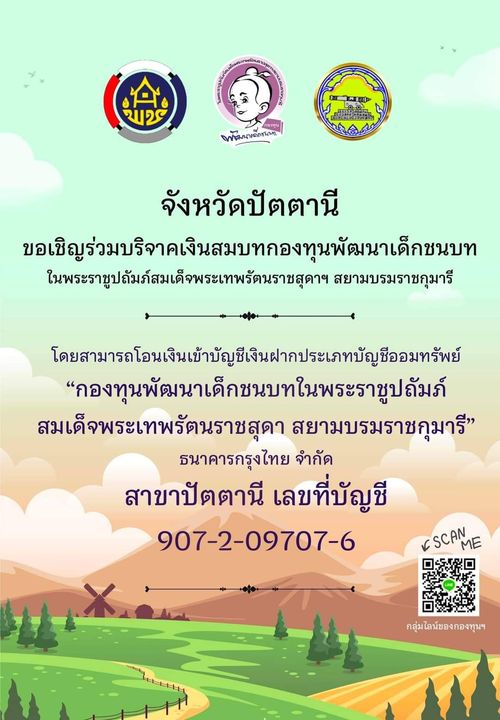 ธนาคารกรุงไทย จำกัด สาขาปัตตานี เลขที่บัญชี 907-2-09707-6