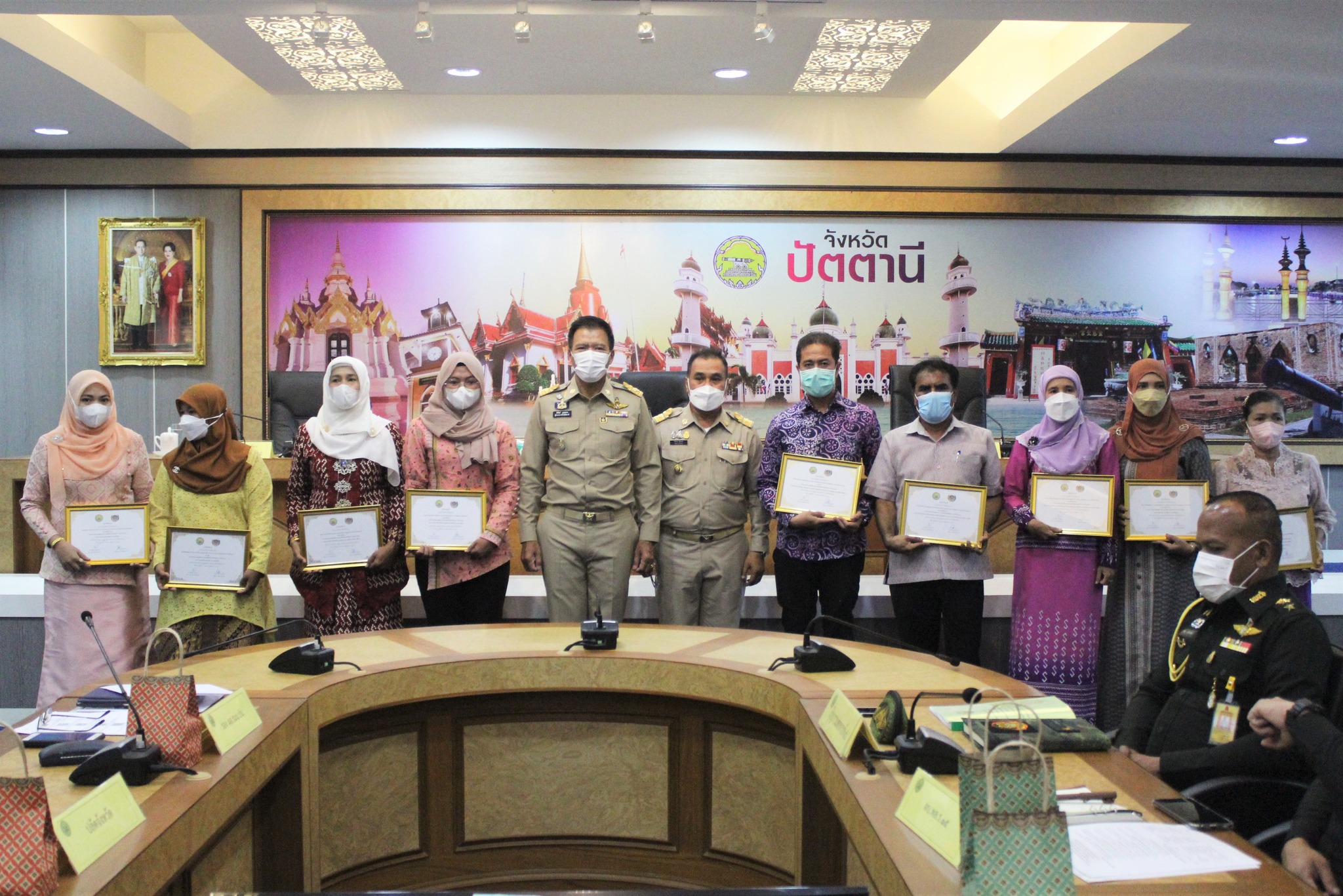 การประชุมฯ วันนี้ นายนิพันธ์ บุญหลวง ผู้ว่าราชการจังหวัดปัตตานี ได้มอบเกียรติบัตรแก่สำนักงานพัฒนาชุมชนองค์ความรู้ดีเด่น (KM Challenge) ประจำปี 2565 และคนกองทุนพัฒนาบทบาทสตรี ซึ่งมีผลการปฏิบัติงานที่มีประสิทธิภาพ สามารถเป็นแบบอย่างได้ พร้อมให้โอวาทแก่ตัวแทนหน่วยงาน กลุ่ม องค์กร ที่เข้าร่วมรับมอบเกียรติบัตร ประกอบด้วย