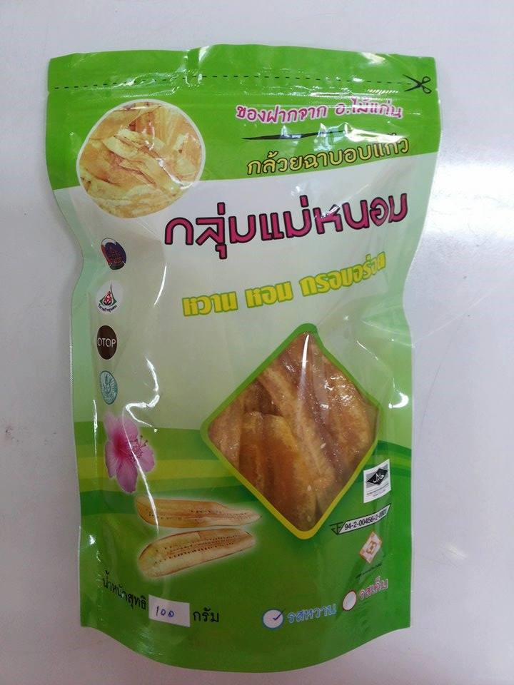 “กล้วยฉาบอบแก้ว” เกิดจากการร่วมกลุ่มของสตรีในบ้านใหญ่ ซึ่งเห็นว่าในชุมชนมีการปลูกกล้วยกันมาก ประกอบกับความรู้ที่ว่ากล้วยสามารถนำมาแปรรูปเป็นอาหารได้หลายอย่าง ทั้งของคาว ของหวาน อาหารว่างทานเล่น และมีคุณค่าทางโภชนาการสูง ประกอบกับฝีมือในการทำอาหารของคนในชุมชนที่เป็นความรู้ดั้งเดิม จึงมีความคิดในการนำกล้วยมาแปรรูปให้เป็นของทานเล่น ของว่าง ในรูปแบบของกล้วยฉาบ โดยใช้สูตรพิเศษและเรียกชื่อว่า “กล้วยฉาบอบแก้ว”